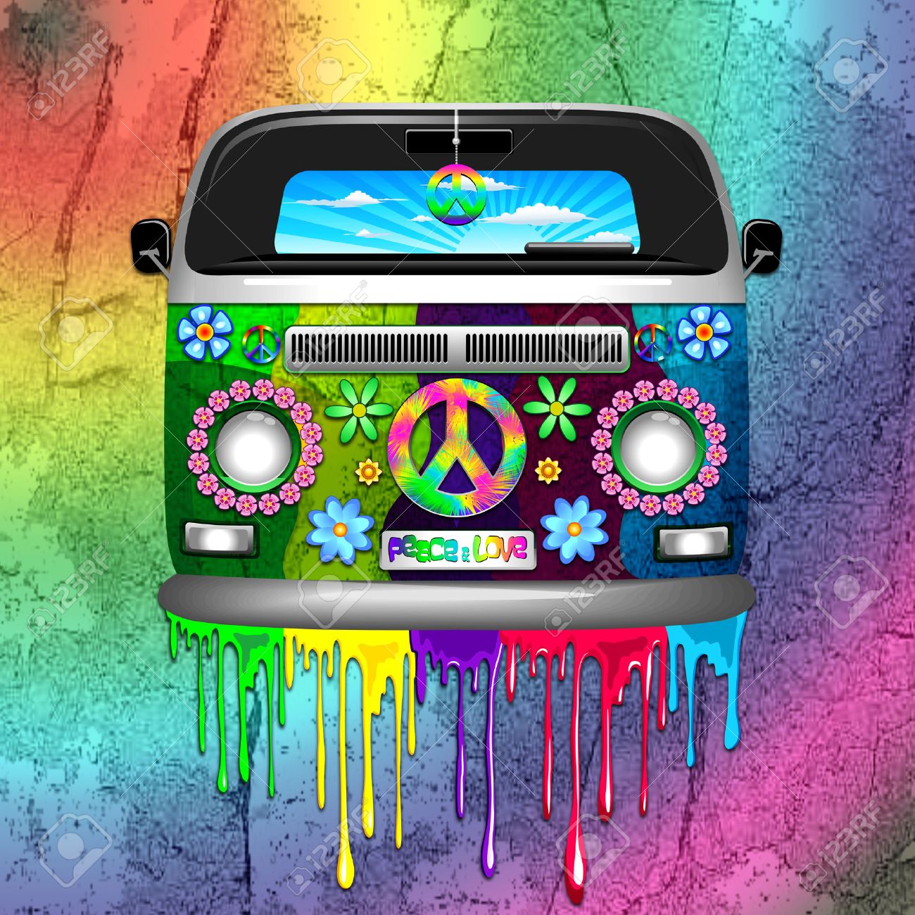 Hippie Van Dripping Rainbow Paint Banco De Imagens Royalty Free Ilustracoes Imagens E Banco De Imagens Image 37320443