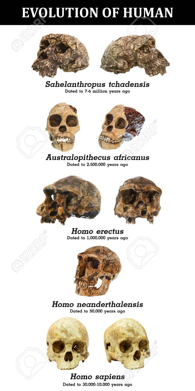 Evolution Of Human Skull Sahelanthropus Tchadensis Australopithecus Africanus Homo Erectus Homo Neanderthalensis Homo Sapiens Banco De Imagens Royalty Free Ilustracoes Imagens E Banco De Imagens Image 87549243