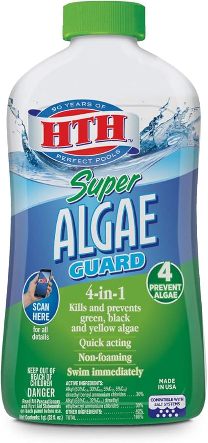 Amazon Com Hth 67032 Super Algas Guard Alicida Limpiador Para Piscina 1 Cuarto De Galon Transparente Jardin Y Exteriores