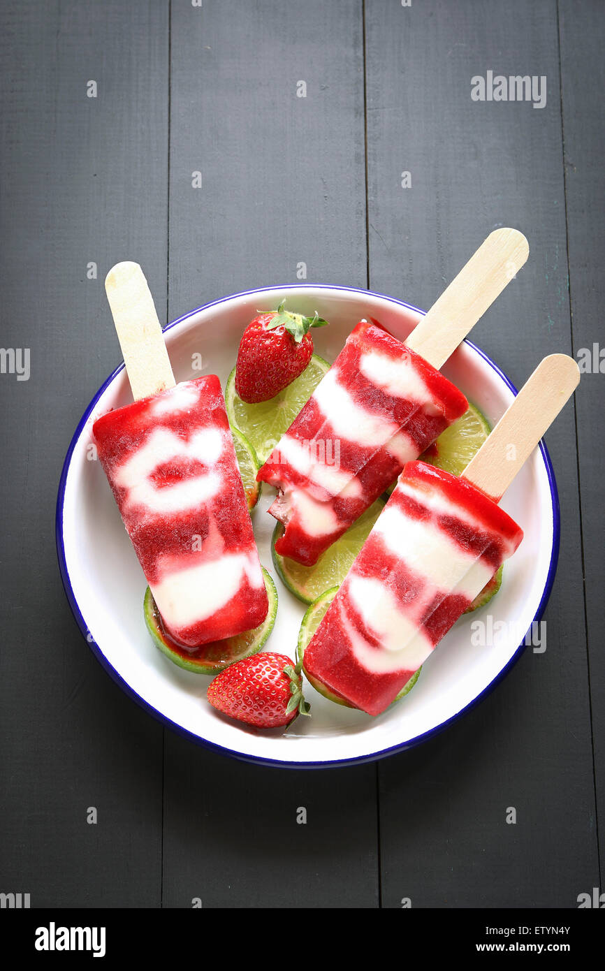 Strawberry Yogurt Ice Cream Popsicle On A Plate Top View Stock Photo Alamy
