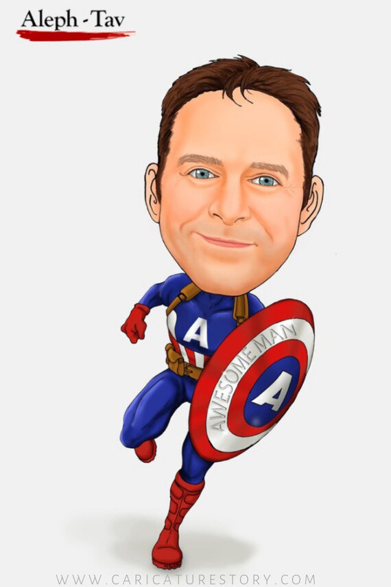 Personalizar Capitan America Caricatura Regalo Retrato De Etsy