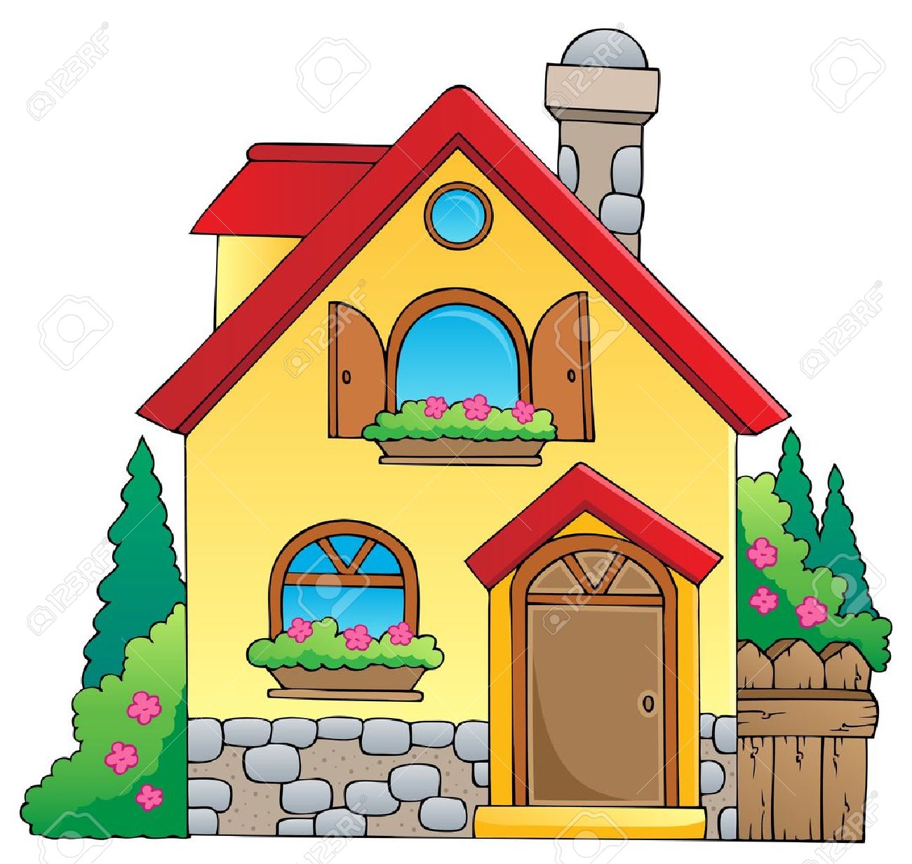 Imagen Colorida De Dibujos Animados Fachada Dos Pisos De La Casa Con Varias Habitaciones Ilustracion Vectorial Ilustraciones Vectoriales Clip Art Vectorizado Libre De Derechos Image 77701642