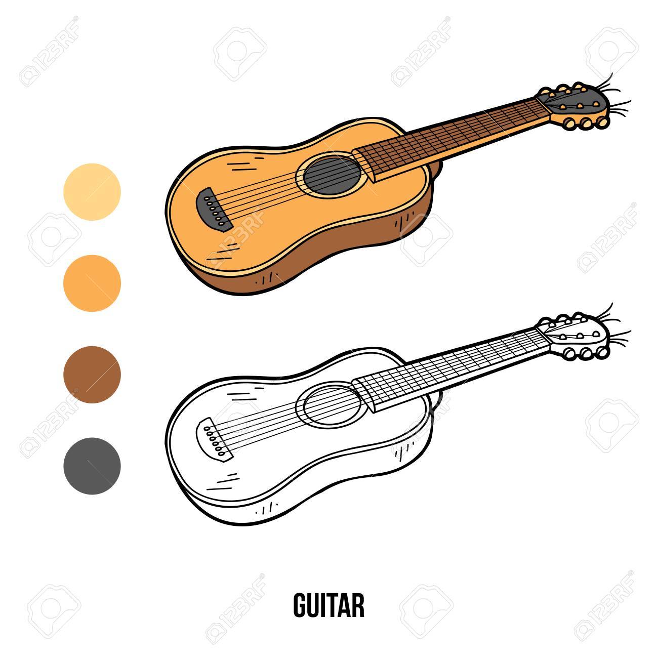 Libro Para Colorear Para Ninos Juego De La Educacion Los Instrumentos Musicales Guitarra Ilustraciones Vectoriales Clip Art Vectorizado Libre De Derechos Image 45628256