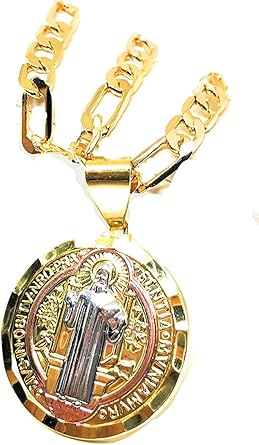 Tri Color Saint Benedict Medal Necklace Figaro 26 San Benito Medalla Cadena Oro Laminado 26 Amazon Com