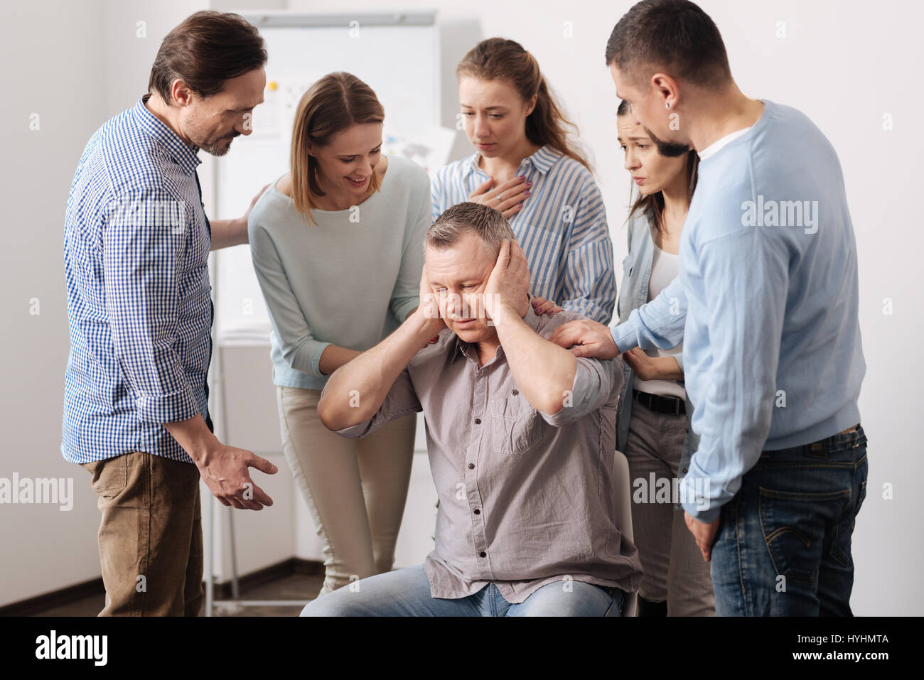 Terco Persona De Sexo Masculino Que Cubren Sus Orejas Fotografia De Stock Alamy