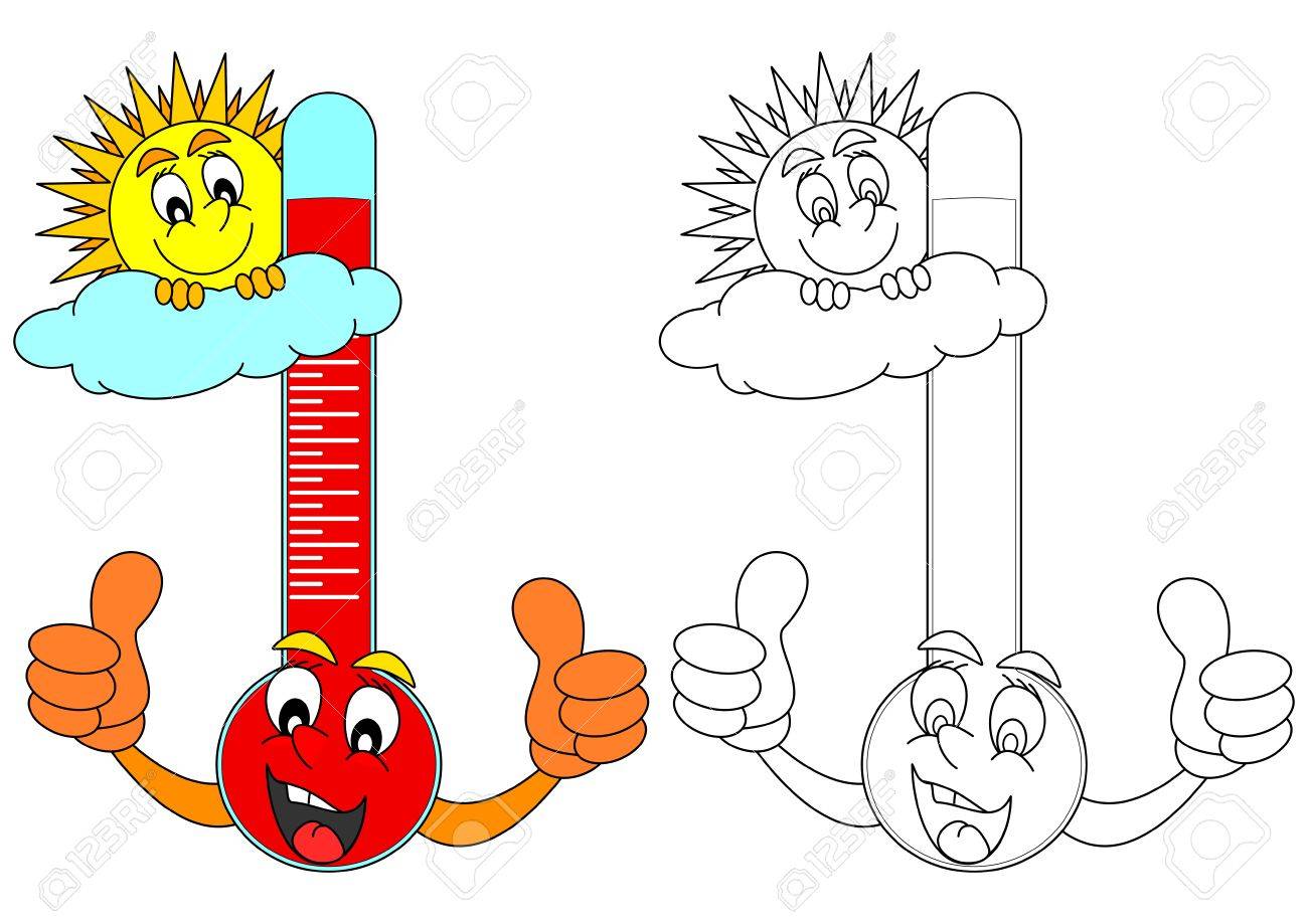 Sonriendo El Termometro Con El Sol Brillando Como Un Libro Para Colorear Para Ninos Pequenos Vector Ilustraciones Vectoriales Clip Art Vectorizado Libre De Derechos Image 66712087