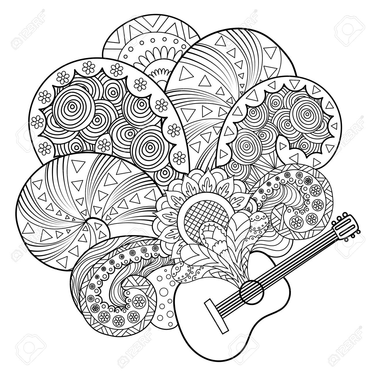 Ilustracion De Vector De Libro Para Colorear De Guitarra Lineas Blancas Y Negras Patron De Encaje Fotos Retratos Imagenes Y Fotografia De Archivo Libres De Derecho Image 72101426