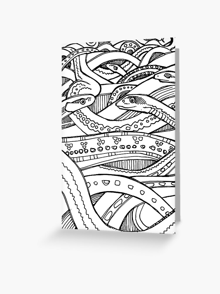 Tarjetas De Felicitacion Serpiente De Liga Roja Imagen De Libro Para Colorear De Gwennpaints Redbubble