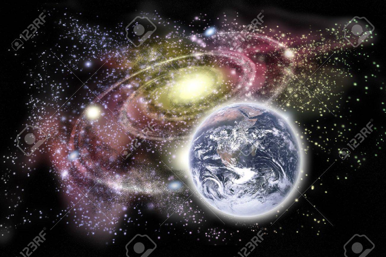 El Planeta Tierra En El Primer Plano Y La Galaxia En El Fondo Imagen Cortesia De La Tierra Http Www Nasa Gov Fotos Retratos Imagenes Y Fotografia De Archivo Libres De Derecho Image 12195884