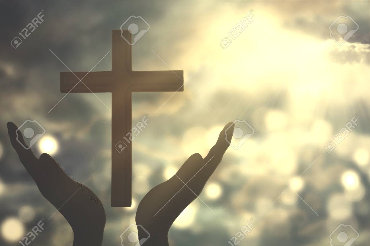 Silueta De Manos Humanas Con Simbolo Cruzado Adorando Al Dios Fotos Retratos Imagenes Y Fotografia De Archivo Libres De Derecho Image 72593017