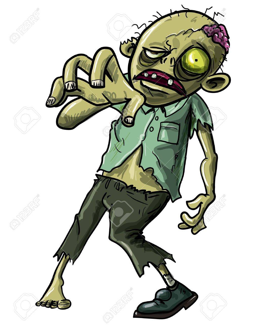 Ilustracion De Dibujos Animados De Un Zombi Muerto O Cadaver Reanimado Haciendo Un Movimiento Con La Mano Agarrando Hacia La Camara Aislada En Blanco Ilustraciones Vectoriales Clip Art Vectorizado Libre De Derechos Image