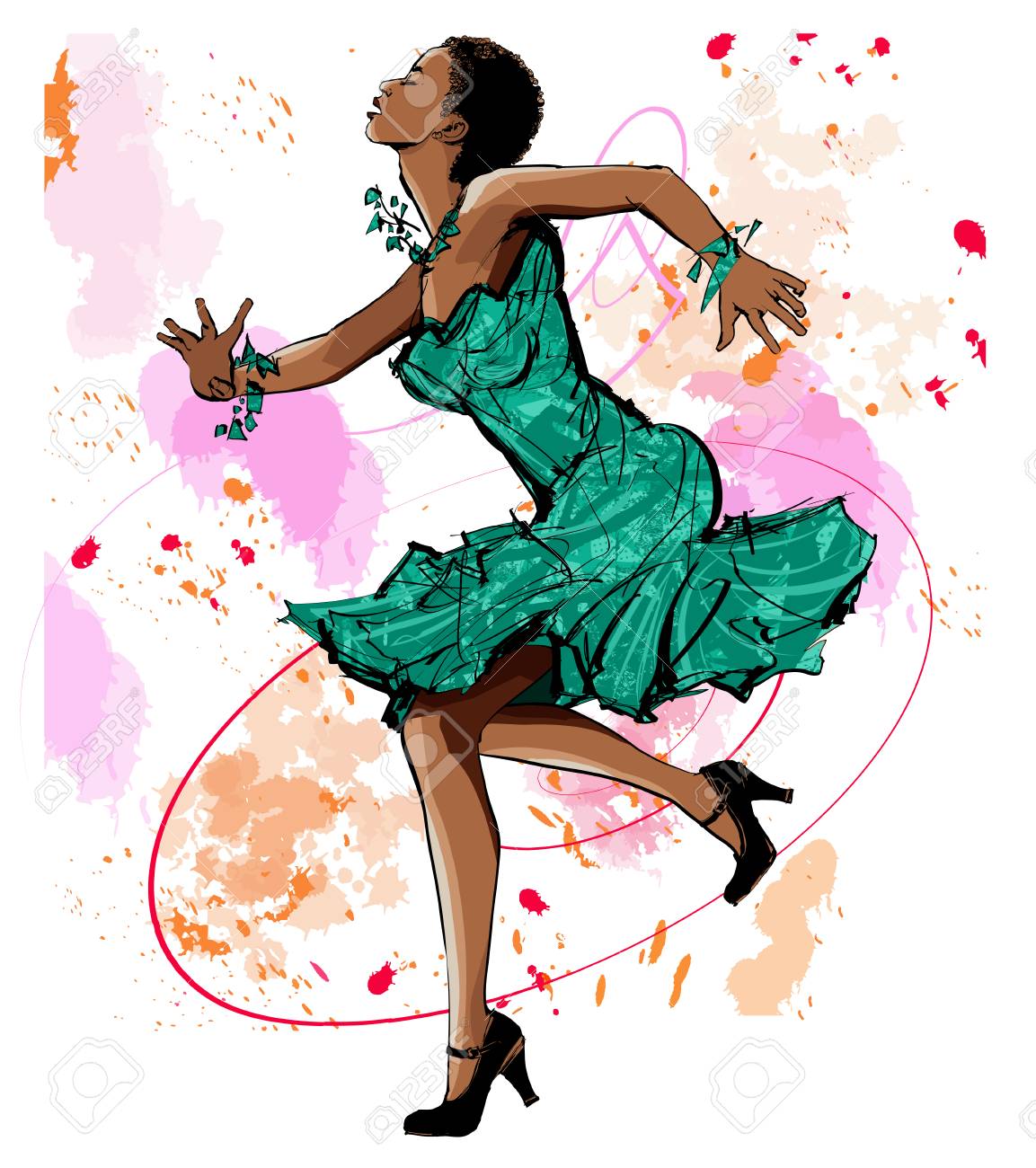 Ilustracion Bailando Baile De La Chica Bailando En Estilo De Dibujos Animados Para Los Aviadores De La Lectura De Los Sombreros De La Escuela Y La Ilustracion Vectorial De La Mulata Ilustraciones