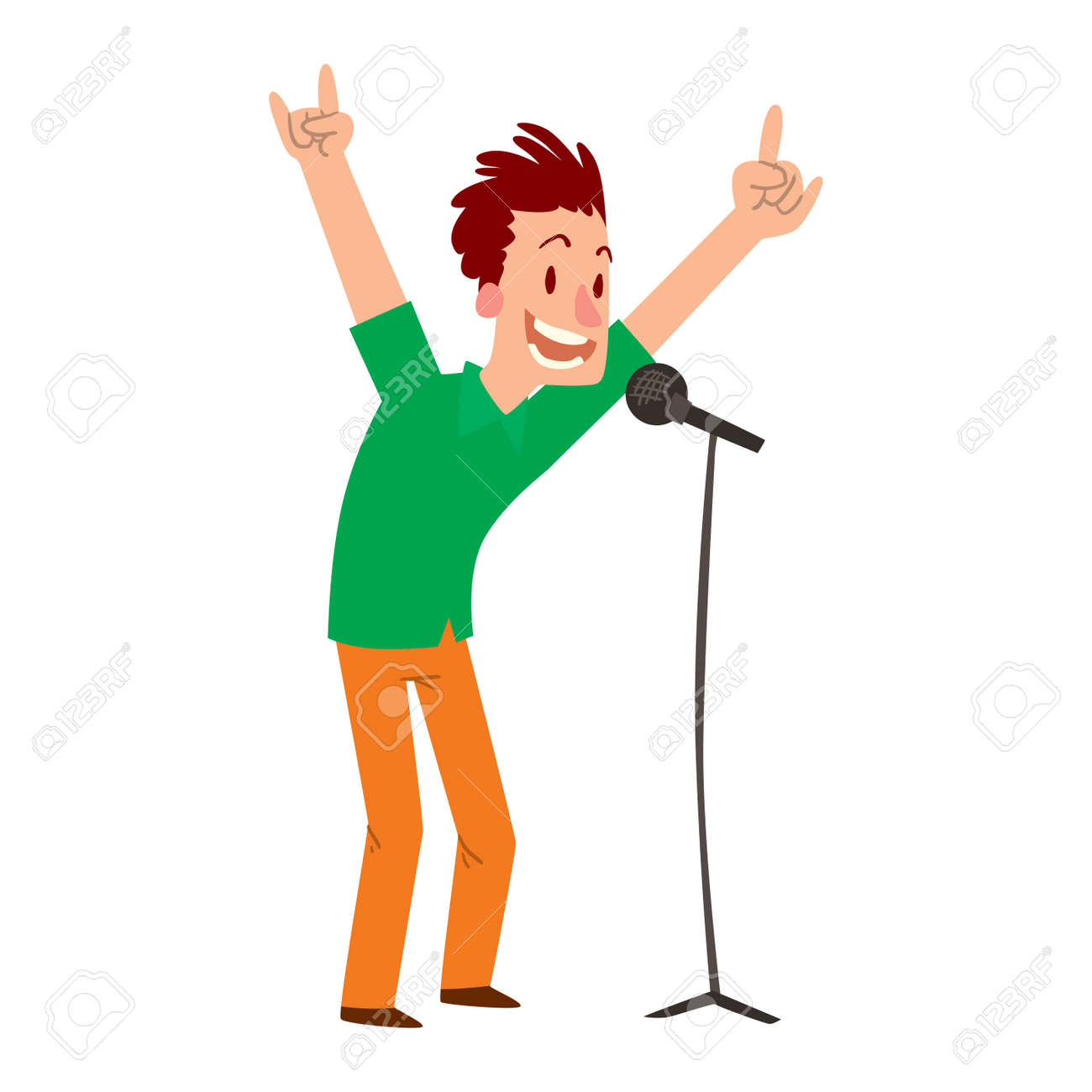 Ilustracion De Nino Lindo Cantando Con Cara Feliz En Estilo De Dibujos Animados Vector Premium