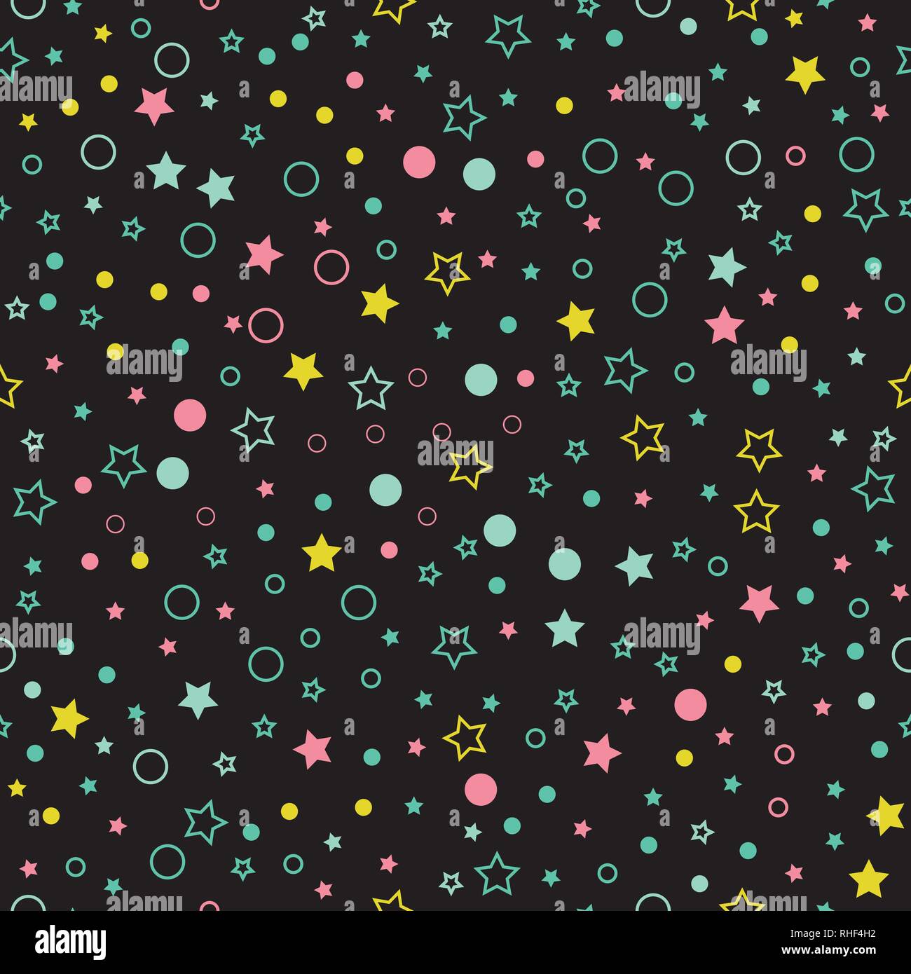Seamless Vector Patron Multicolor Con Estrellas Circulos Y Puntos Sobre Fondo Negro Imagen Vector De Stock Alamy