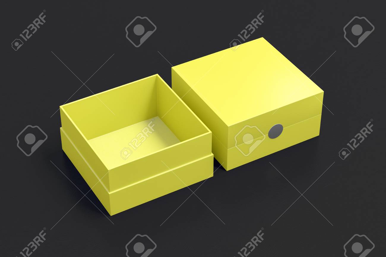 Dos Cajas Cuadradas Amarillas Abiertas Y Cerradas Sobre Fondo Negro Ilustracion 3d Fotos Retratos Imagenes Y Fotografia De Archivo Libres De Derecho Image 94646276