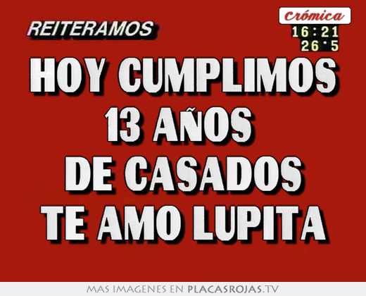 Hoy Cumplimos 13 Anos De Casados Te Amo Lupita Placas Rojas Tv