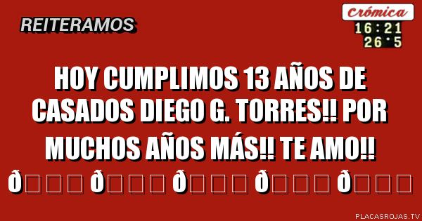 Hoy Cumplimos 13 Anos De Casados Diego G Torres Por Muchos Anos Mas Te Amo Placas Rojas Tv