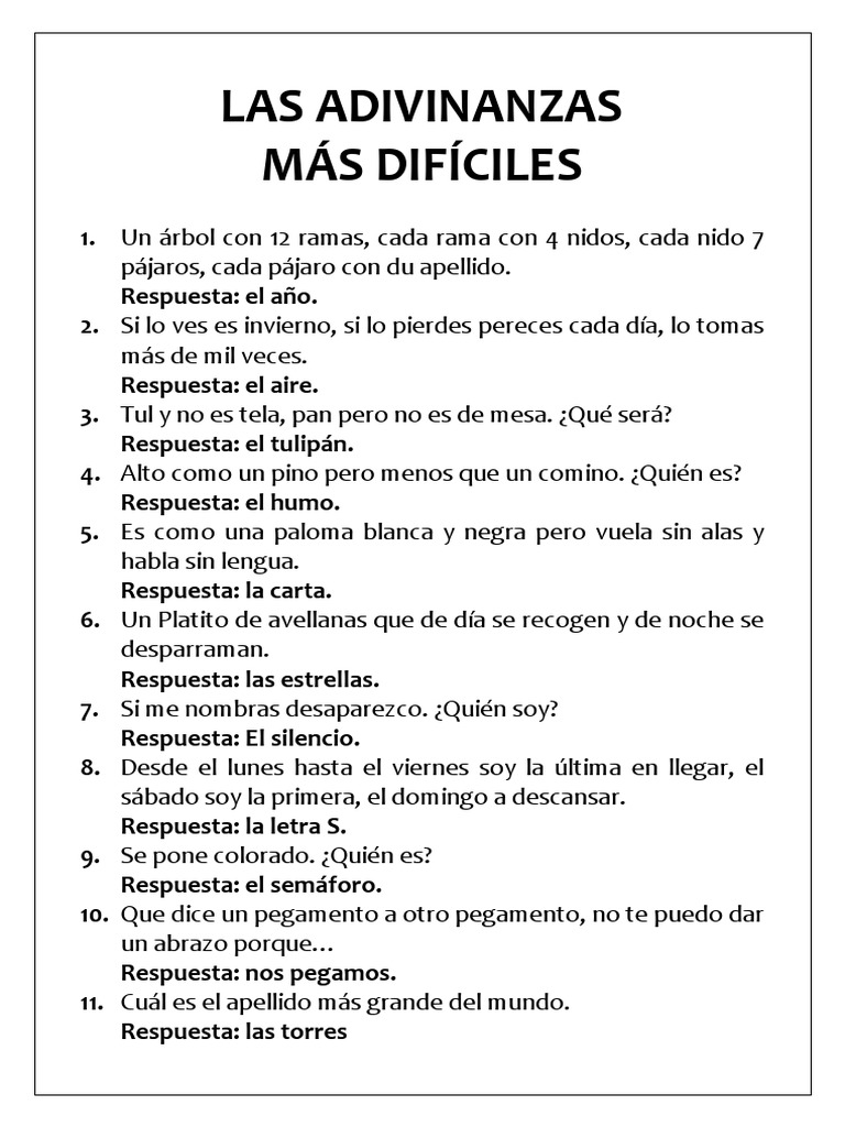 Acertijos Y Adivinanzas Dificiles Para Ninos Todo Imagenes