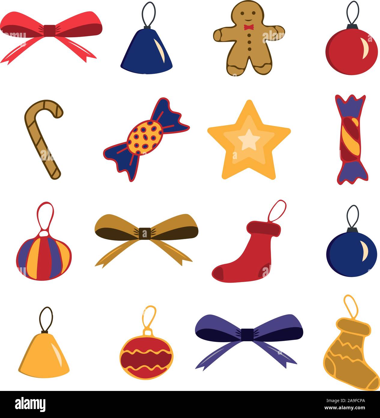 Un Conjunto De Adornos Navidenos De Juguetes Sobre Un Fondo Blanco Ilustracion De Dibujos Animados De Vacaciones Imagen Vector De Stock Alamy