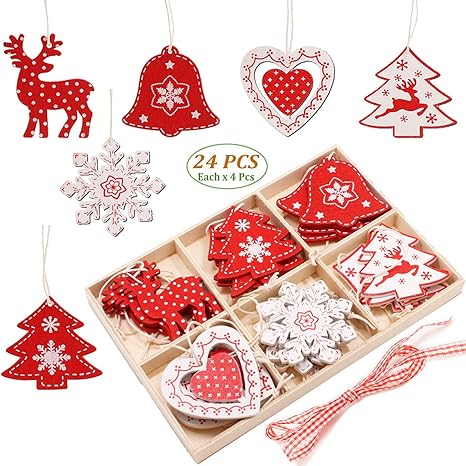 Amazon Com Set De Adornos Navidenos De Seehan 2020 De Madera Para Arbol De Navidad 24 Piezas De 2 0 Pulgadas De Madera Para Colgar Adornos Para Arbol De Navidad Con Caja De Almacenamiento