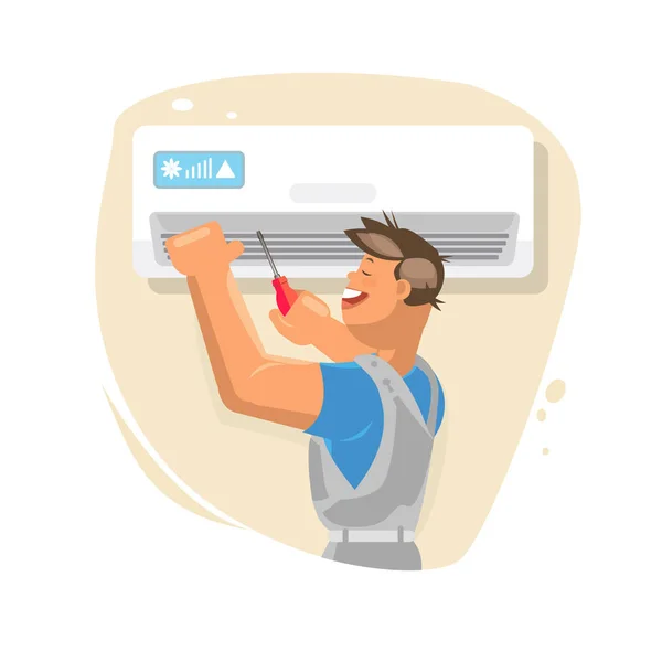 Vector De Servicio De Reparacion De Aire Acondicionado Hombre Joven Que Repara El Acondicionador De Aire Ilustracion De Personaje De Dibujos Animados Fotos Retratos Imagenes Y Fotografia De Archivo Libres De Derecho