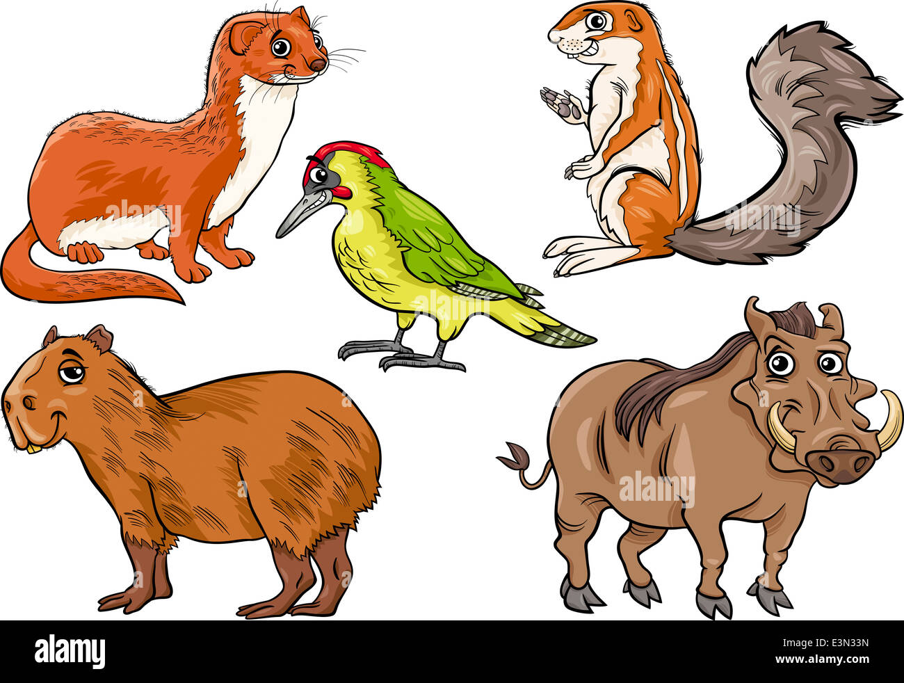 Ilustracion De Dibujos Animados De Animales Silvestres Divertido Juego De Caracteres Fotografia De Stock Alamy