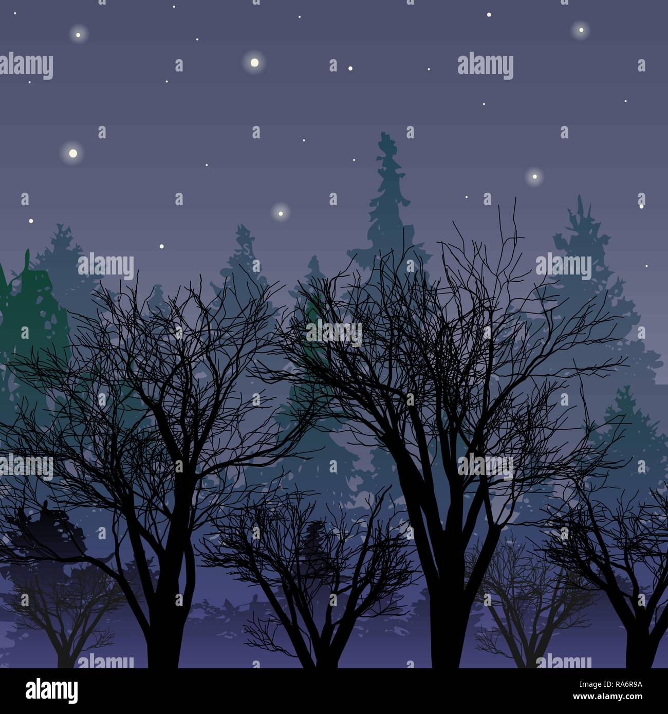 Bosque Al Anochecer Paisaje Con Las Primeras Estrellas 10 Eps Imagen Vector De Stock Alamy