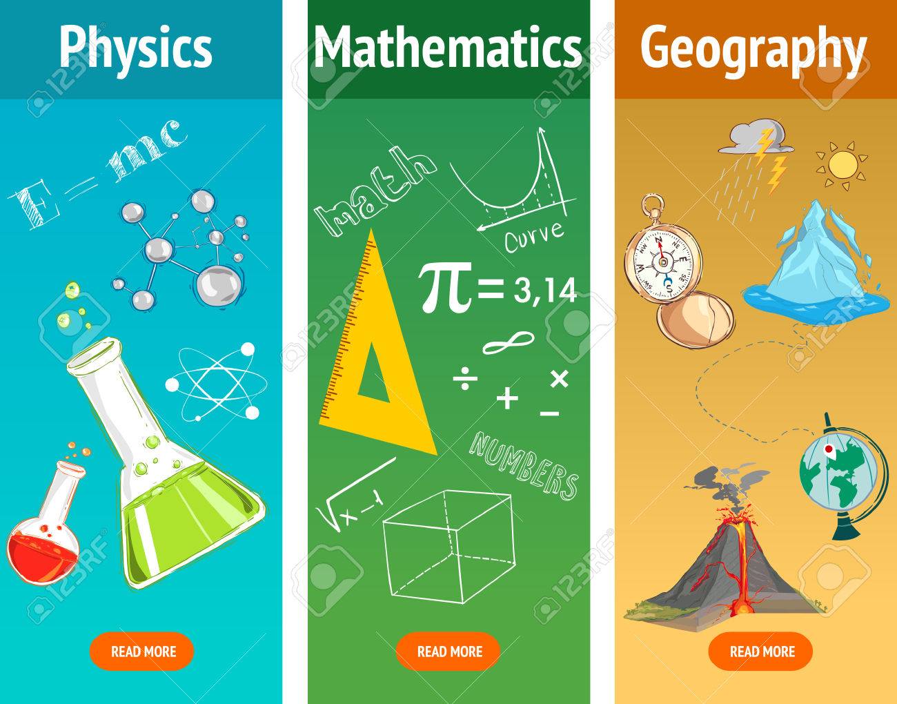 Matematicas Basicas Fisica Ciencias De La Geografia Asignaturas Escolares Conjunto De Banderas De Educacion Y Ciencia Ilustraciones Vectoriales Clip Art Vectorizado Libre De Derechos Image 76575364