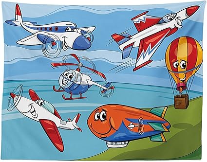 Vipsung Kids Decor Mantel Avion Helicoptero De Dibujos Animados Juguete Aviones Jets Y Globo De Aire Caliente Avion Barco Fiesta Decoracion Comedor Cocina Funda Para Mesa Rectangular Amazon Es Hogar