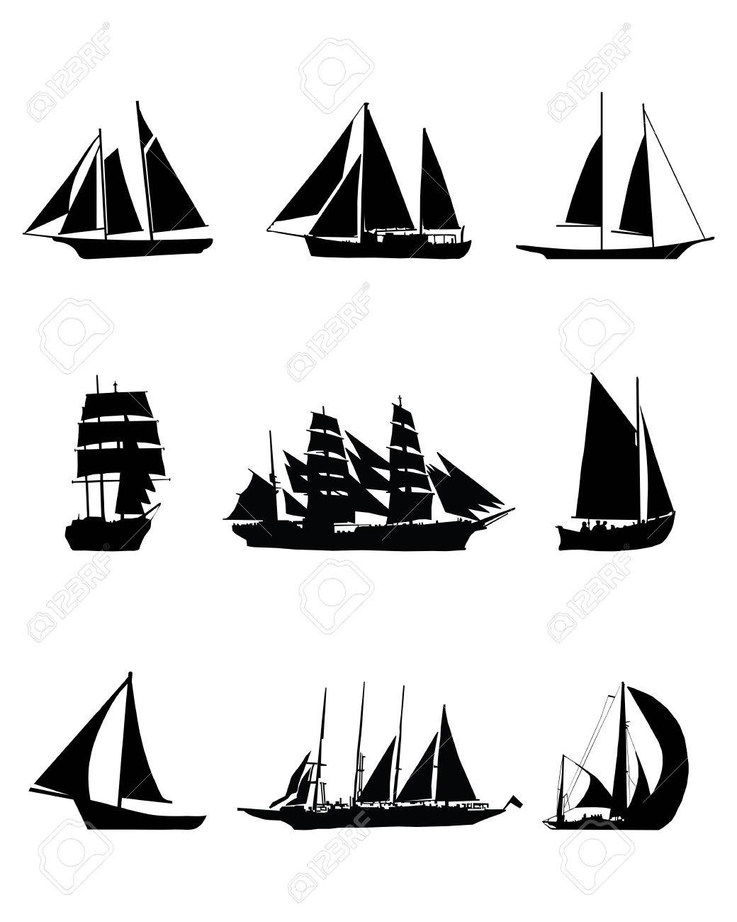 Negro Siluetas De Barcos De Vela Ilustracion Vectorial Ilustraciones Vectoriales Clip Art Vectorizado Libre De Derechos Image 43943373