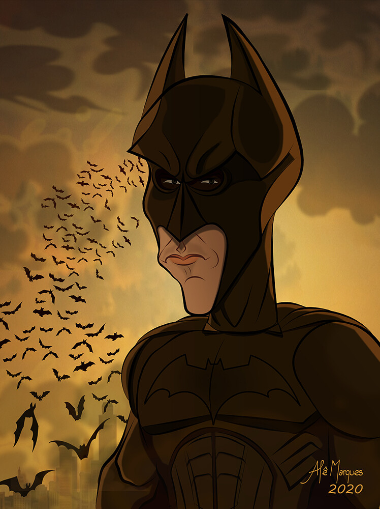 Artstation Batman Christian Bale Caricature Alessandro Marques