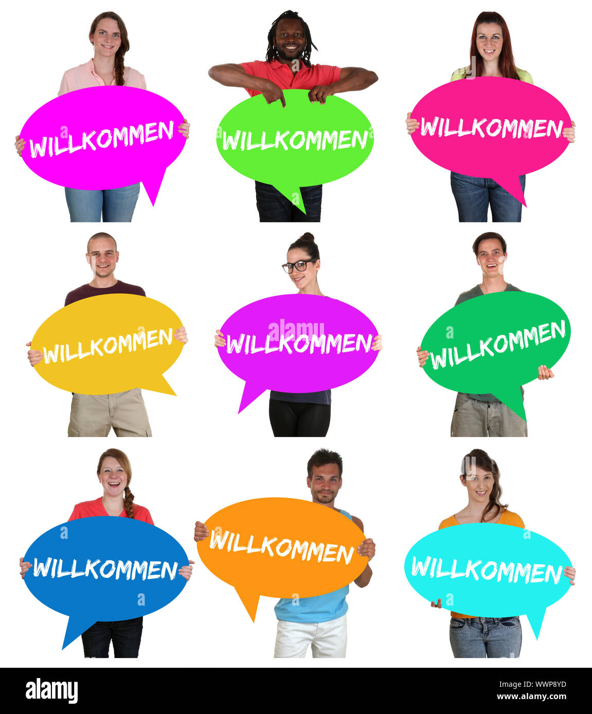 Multiples Grande Grupo Etnico De Los Jovenes Sonrientes Con Palabra De Bienvenida Fotos Retratos Imagenes Y Fotografia De Archivo Libres De Derecho Image 42709125