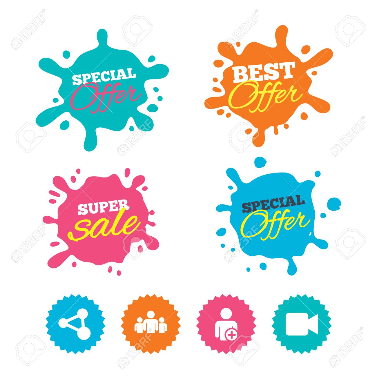 Mejor Oferta Y Venta De Banners De Bienvenida Grupo De Personas Y Compartir Iconos Anadir Simbolos De Usuario Y Camara De Video Senales De Comunicacion Etiquetas Web De Compras Vector Ilustraciones Vectoriales