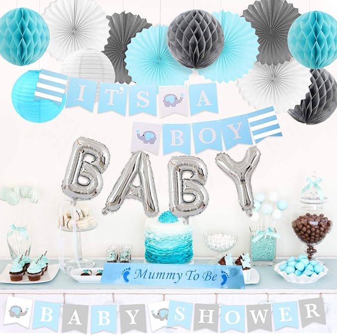 Azul Decoracion Fiesta De Bienvenida De Bebe