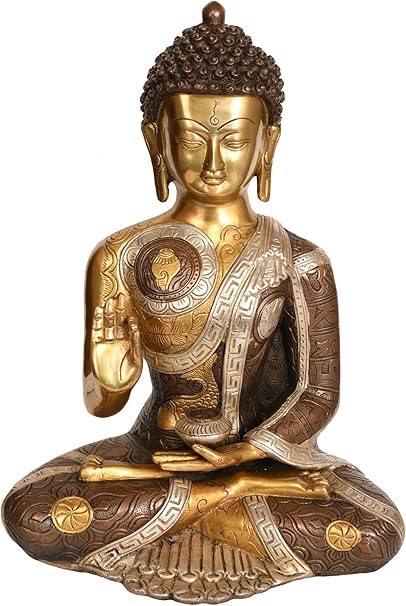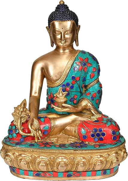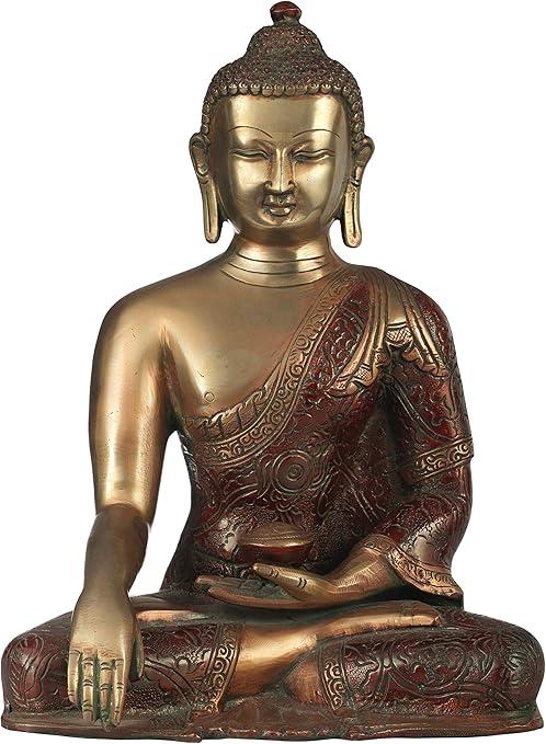 Exotic India Tibetano Budista Deidad Buda En Bhumisparsha Mudra Brass Estatua Con Incrustaciones Amazon Es Hogar