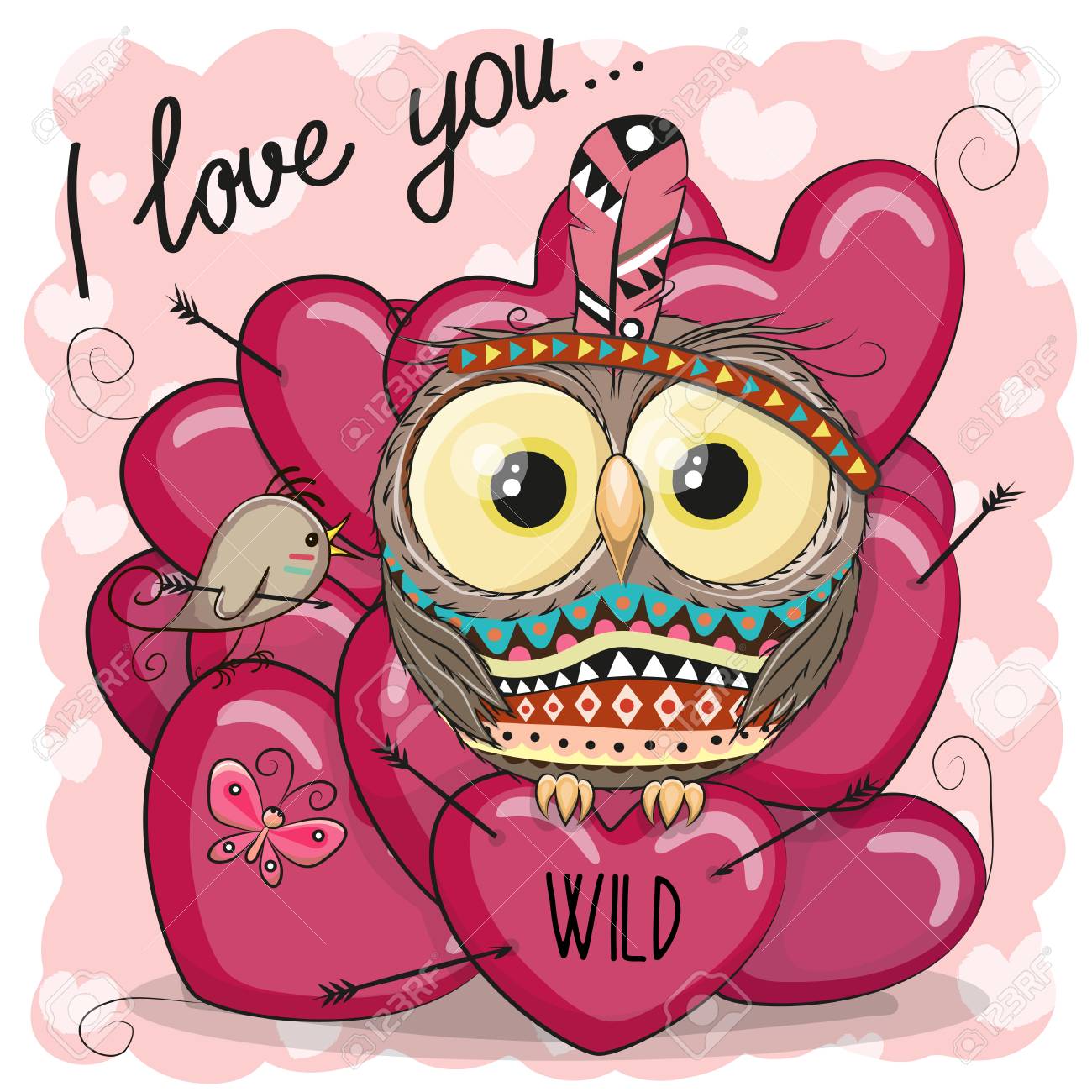 Buho Tribal De Dibujos Animados Lindo Con Plumas Y Corazones Ilustraciones Vectoriales Clip Art Vectorizado Libre De Derechos Image 93460390