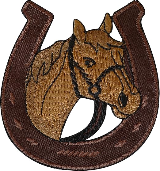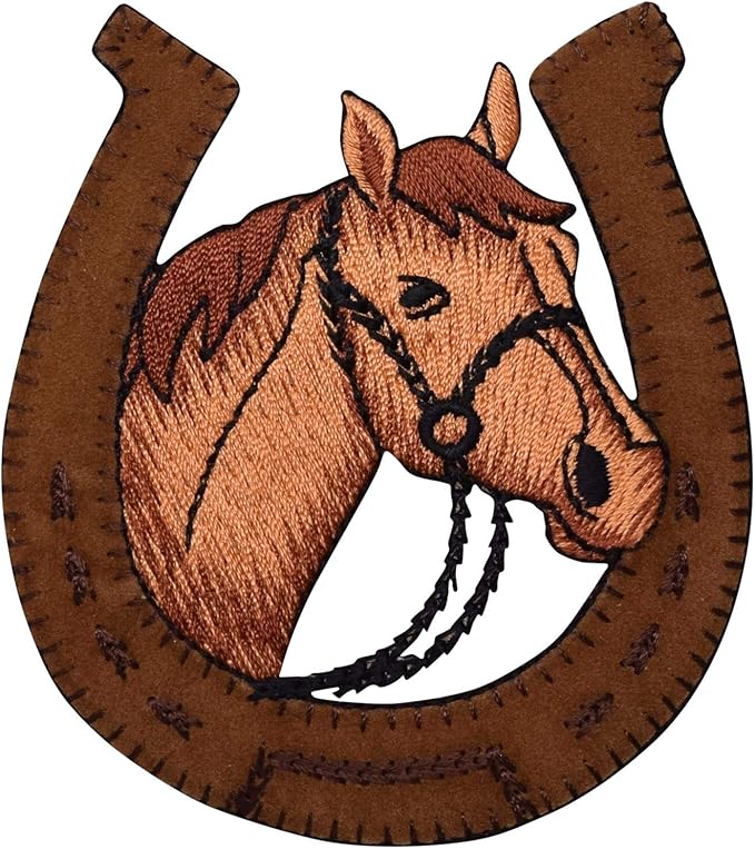 Amazon Com Cabeza De Caballo En Herradura Hierro Sobre Bordado Parche Arte Manualidades Y Costura