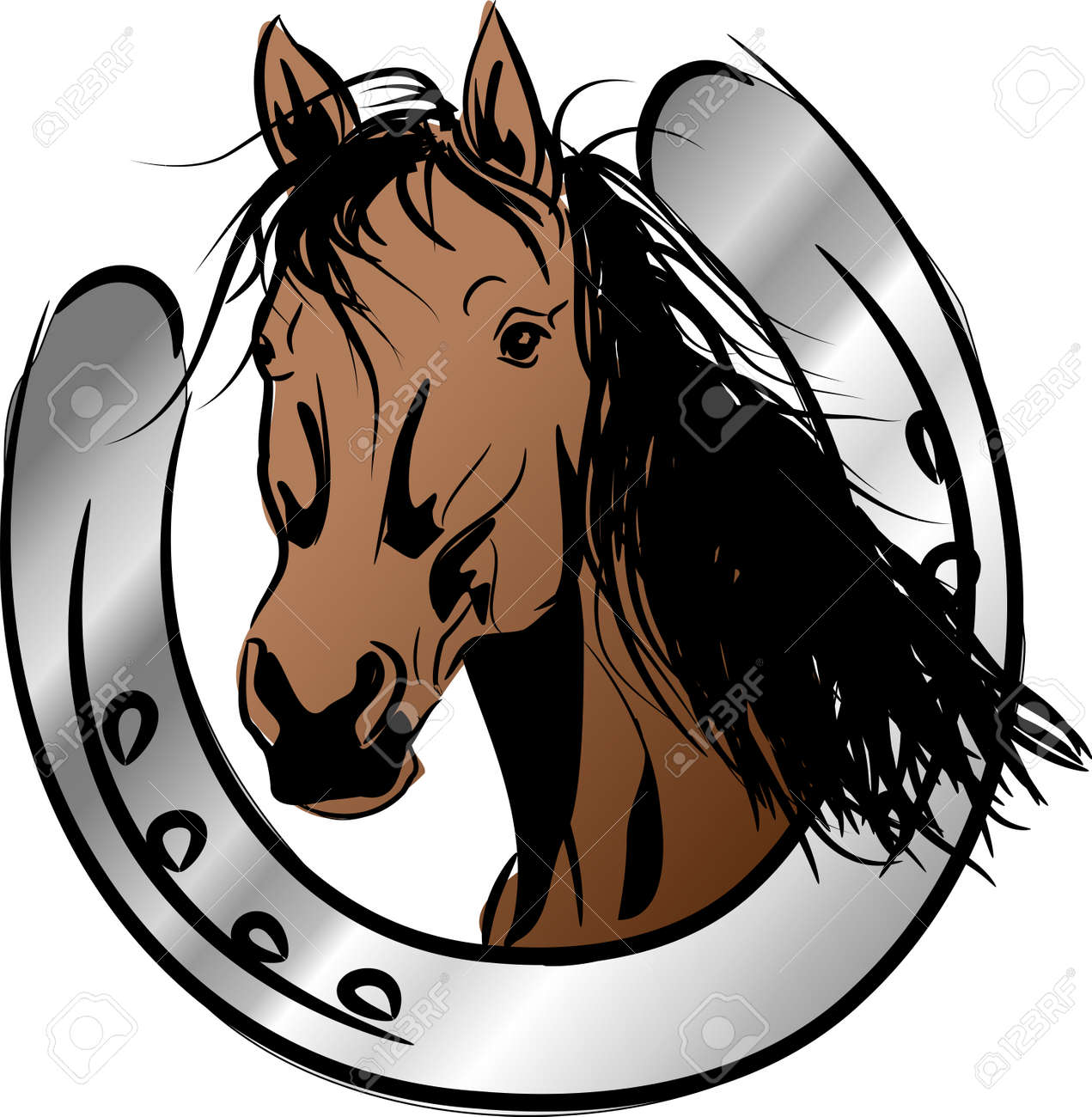 Ilustracion De La Cabeza De Caballo Marron En Herradura De Plata Fotos Retratos Imagenes Y Fotografia De Archivo Libres De Derecho Image 71049020