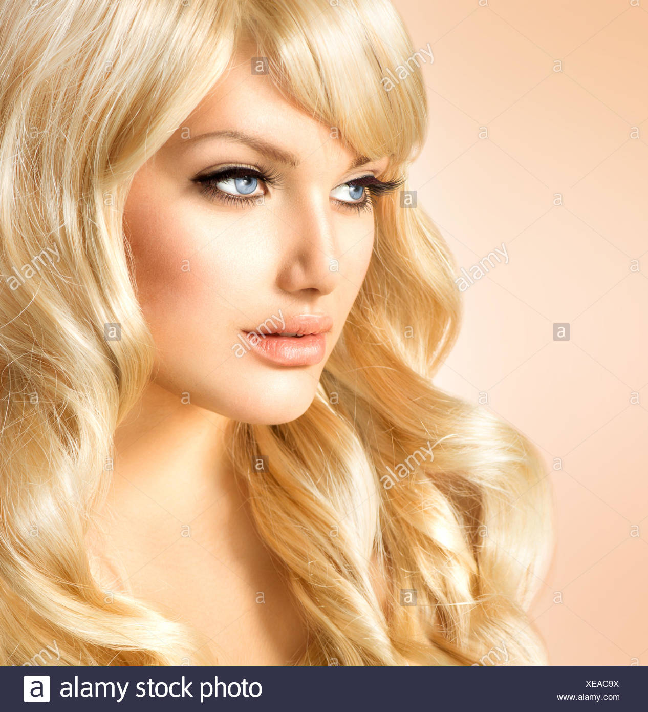Belleza Rubia Hermosa Chica Con Pelo Largo Y Rizado Cabello Rubio Fotografia De Stock Alamy