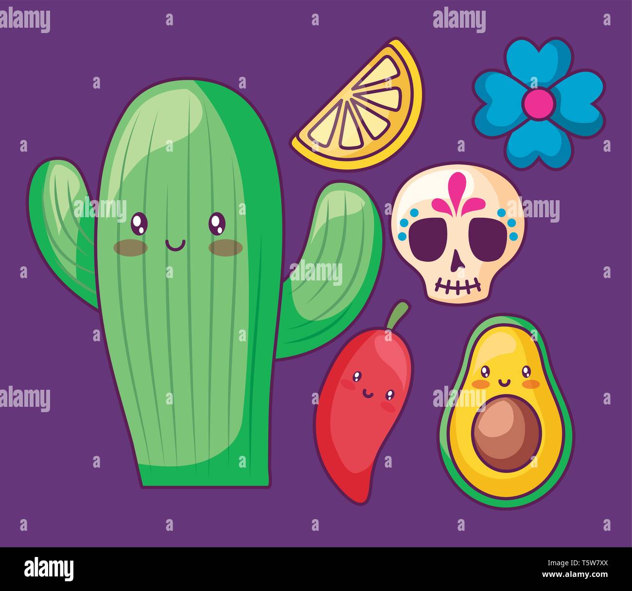Diseno De Dibujos Animados De Cactus Kawaii Expresion Caracter Lindo Y Divertido Tema De Emoticonos Ilustracion Vectorial Imagen Vector De Stock Alamy