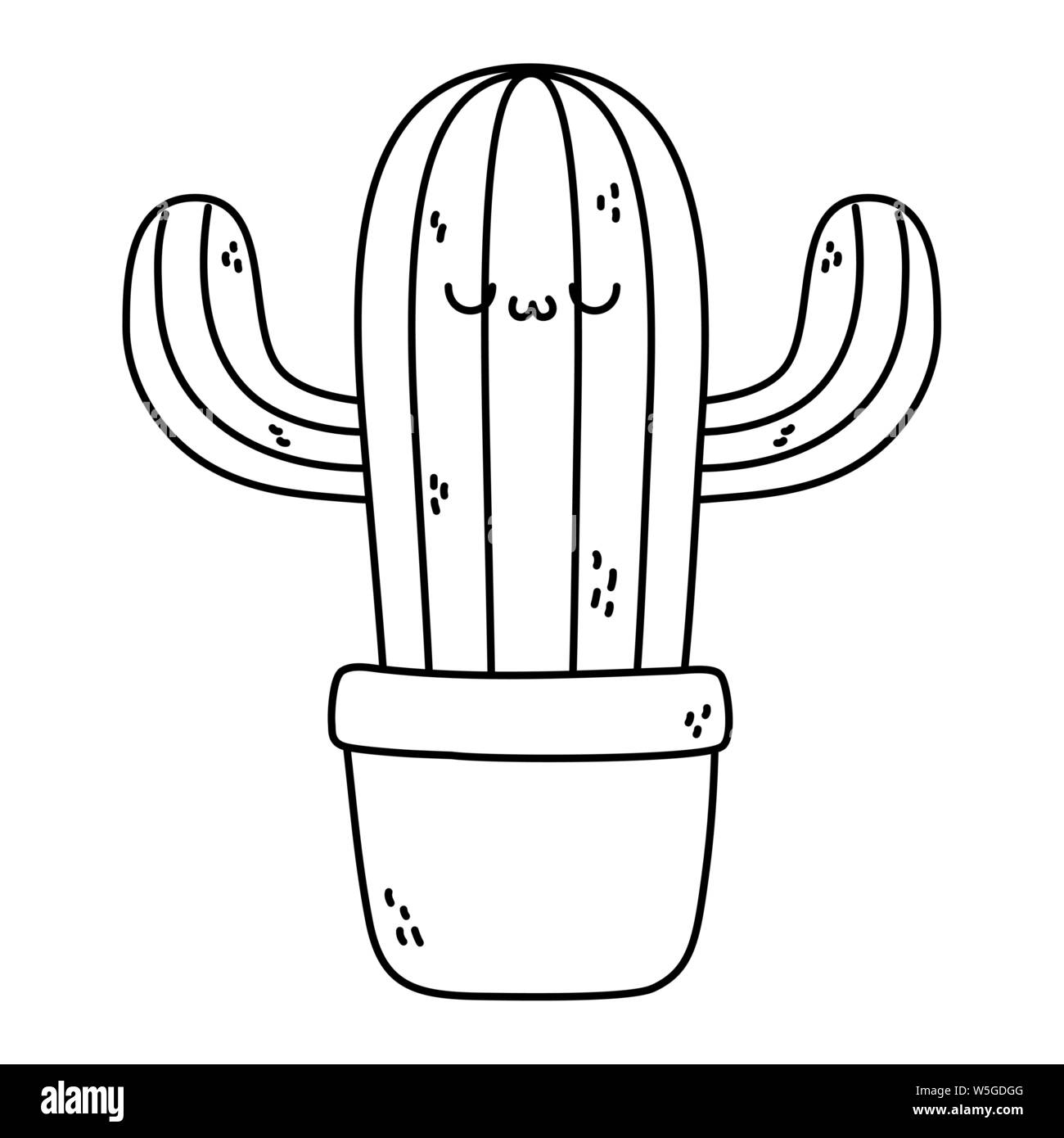 Line Kawaii Cute In Love Cactus Plant Royalty Free Cliparts Vectors And Stock Illustration Image 85456908