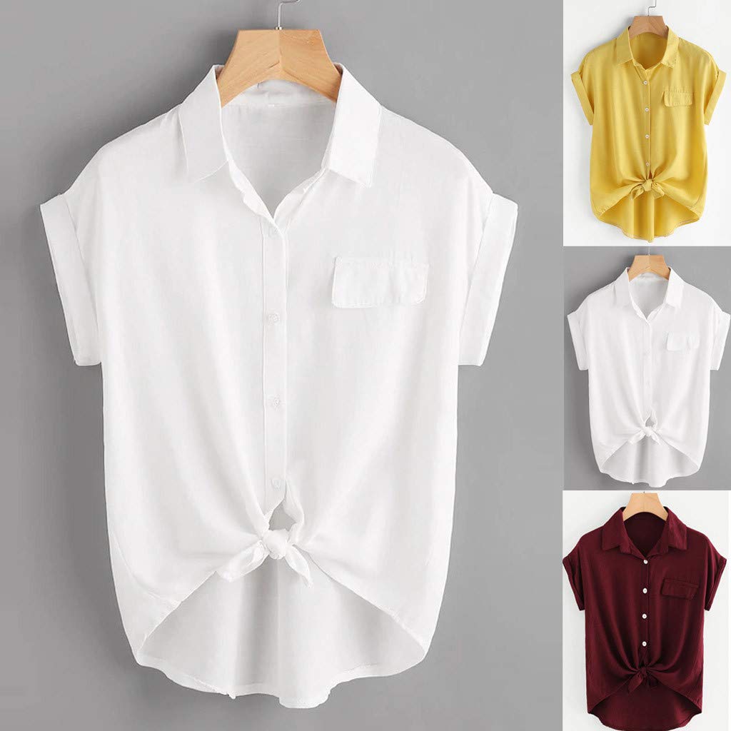 Mujer 2019 Blusas Para Mujer Color Solido Blusa Verano Mujer Manga Corta Anudado Blusas Loolik Girl Camisas Mujer Ropa Motovation Accessory Com Sg