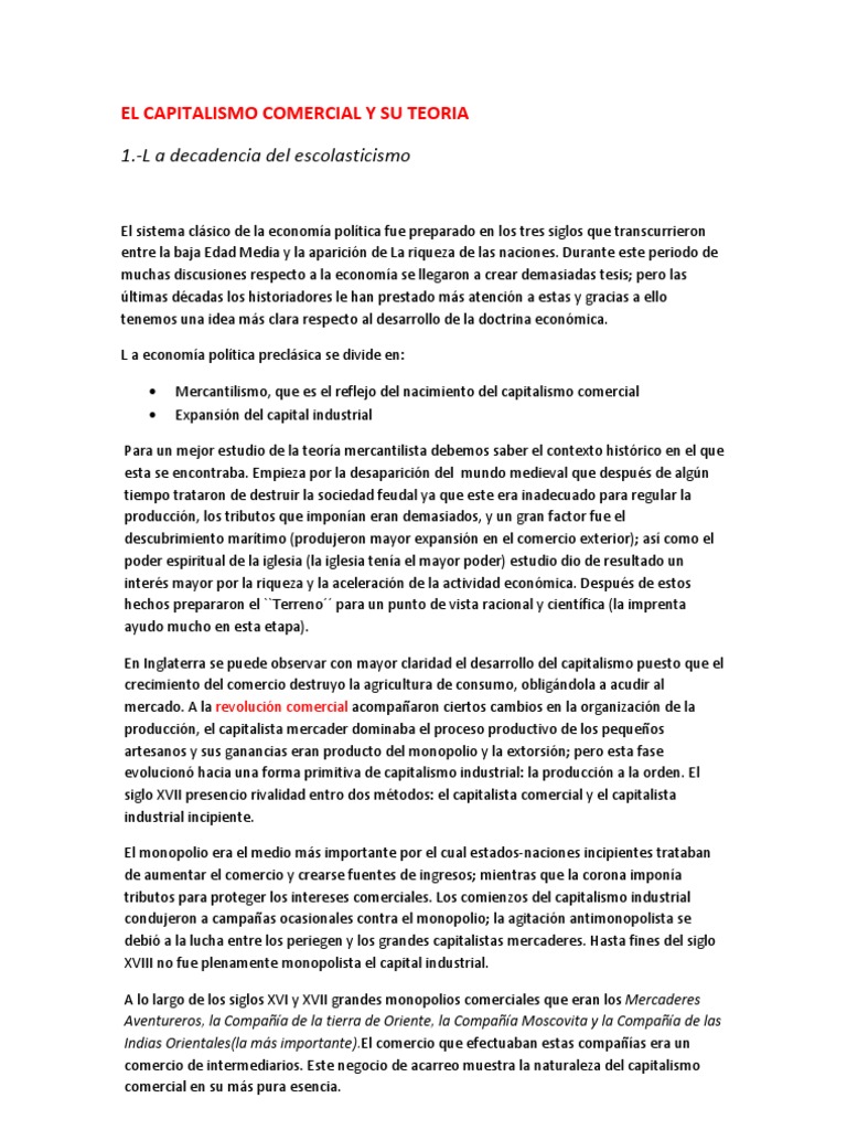 El Capitalismo Comercial Y Su Teoria Capitalismo Mercantilismo
