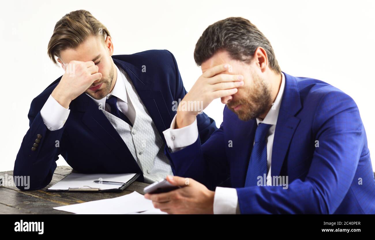 Los Hombres Con Caras Cansadas Y Preocupadas Leen Sobre El Fracaso De Los Negocios Los Socios