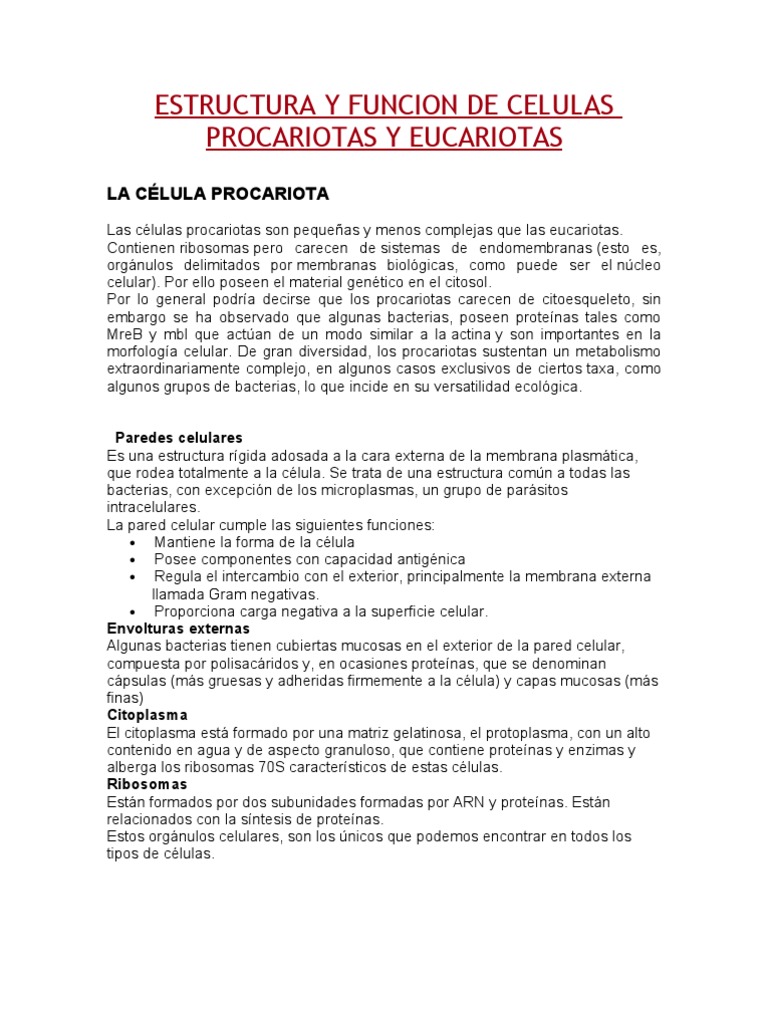 La Celula Y Las Estructuras Celulares Eucariotas Y Procariotas