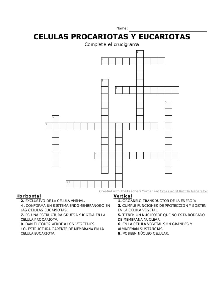 Crucigrama Celulas Procariotas Y Eucariotas Pdf