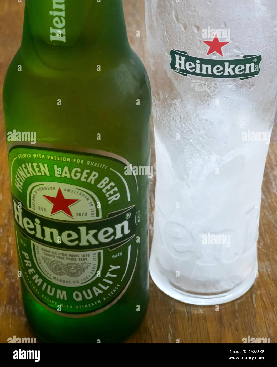 Una Botella De Cerveza Heineken Junto A Un Vidrio Esmerilado Fotografia De Stock Alamy