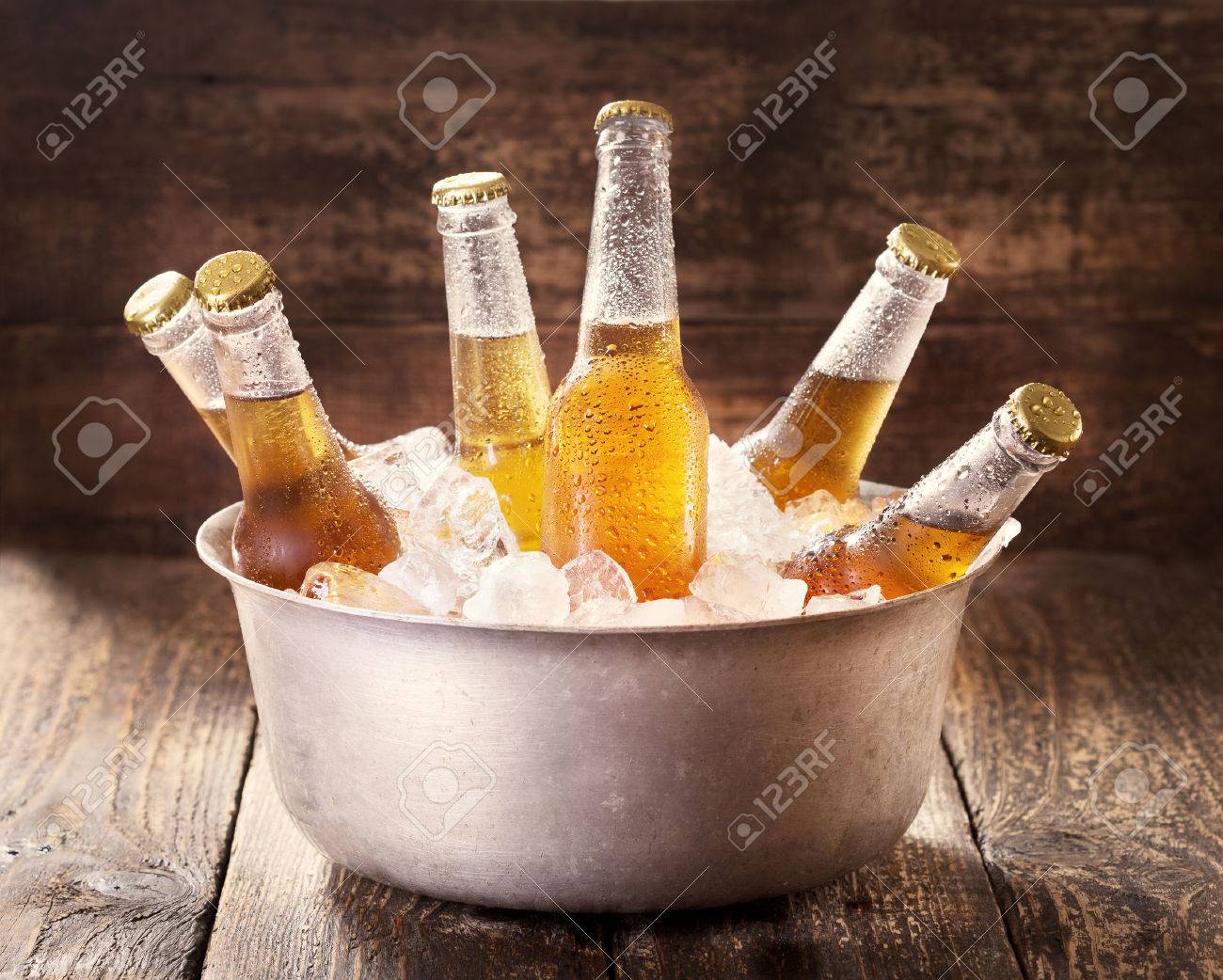 Botellas Frias De Cerveza En Un Cubo Con Hielo En Mesa De Madera Fotos Retratos Imagenes Y Fotografia De Archivo Libres De Derecho Image 38959618