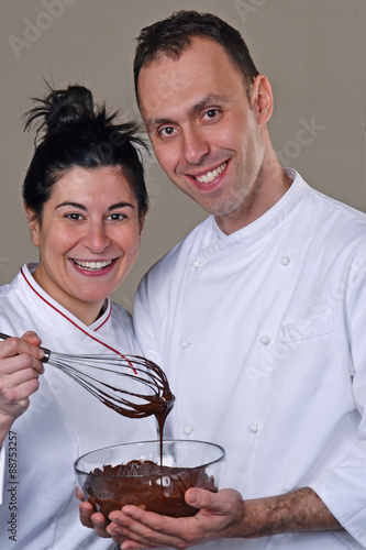 Retrato De Una Pareja De Chef Cocinando Crema De Chocolate Buy This Stock Photo And Explore Similar Images At Adobe Stock Adobe Stock