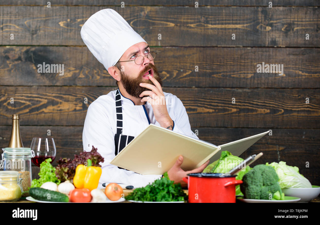 El Hombre Barbado Chef Cocinando Comida Guy Lea El Libro De Recetas Concepto De Artes Culinarias